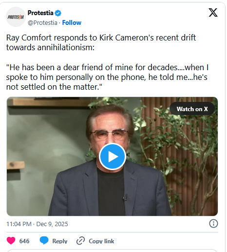 Living Waters evangelist Ray Comfort, whose ministry involves distributing tracts and engaging passersby with the law and the gospel at the Huntington Beach pier, recently addressed comments made by his long-time friend and frequent collaborator Kirk Cameron, who questioned the traditional doctrine of unbelievers facing eternal conscious torment, expressing openness to annihilationism.