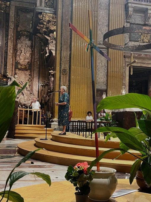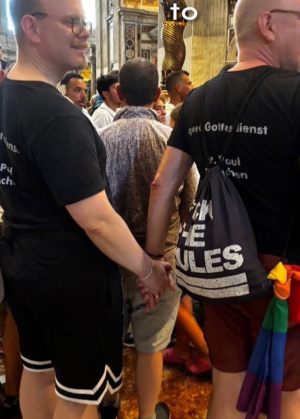 Along with the general revelry, they’ve been attending events specifically geared for the that have been published on the Vatican’s official online calendar, including the prayer vigil at the Jesuit Church of the Gesù and the mass at St. Peters, which appeared under the unnsasuming title “Pilgrimage of the Tenda di Gionata Association (Jonathan’s Tent) and other associations”