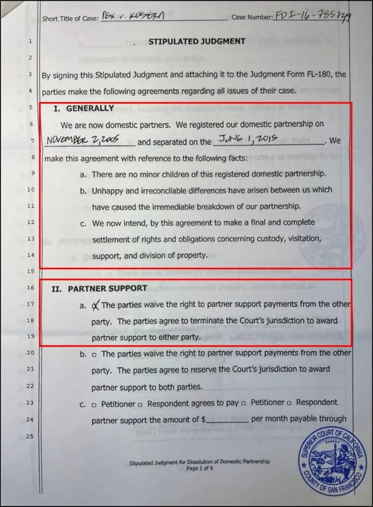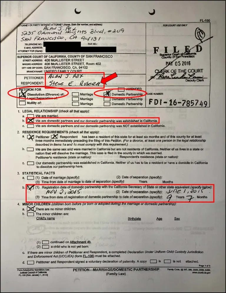 Rosera entered a formal domestic partnership with another man, Alan Pex in 2005 and filed for a “dissolution of Domestic Partnership” in 2015. While together, Pex married another man, with the three forming an unusual throuple relationship.