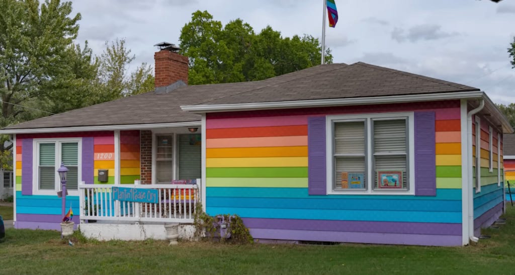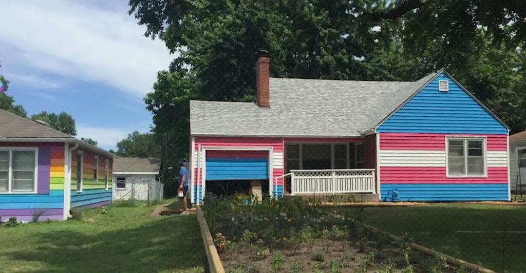 While many family members own houses around the church, some enterprising activists purchased property across from them, painting their houses in LGBTQ colors.
